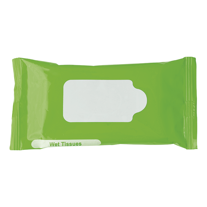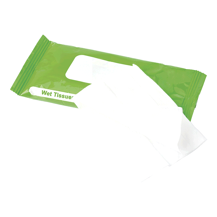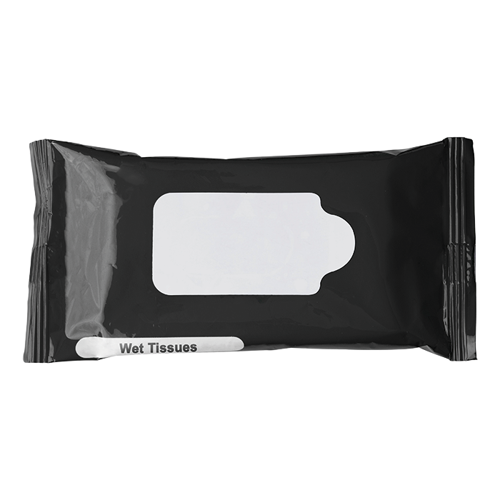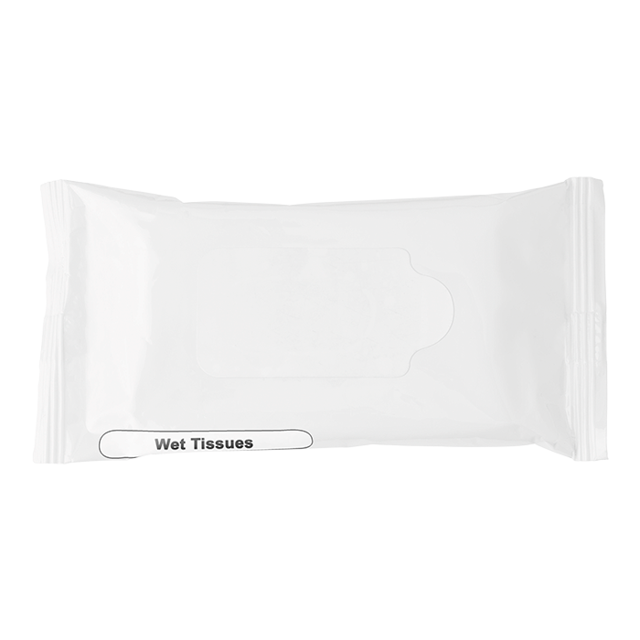 Plastic sealed bag with 10 pieces non-woven pre-moistened wipes, BSCI, Size: 15 x 8 x 1.5cm