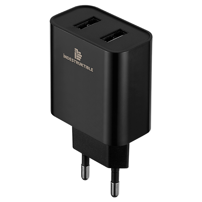 Output Power: 5 VDC @ 3.1 A, Universal Voltage for Traveling, Charge 2 Devices at the same Time, Connection Type: USB Type – A, Output 2: 5 V DC, 1 A, Output 1: 5 V DC, 2.1 A, Includes 2 Charge Cables, Input Voltage: 100~240 V AC