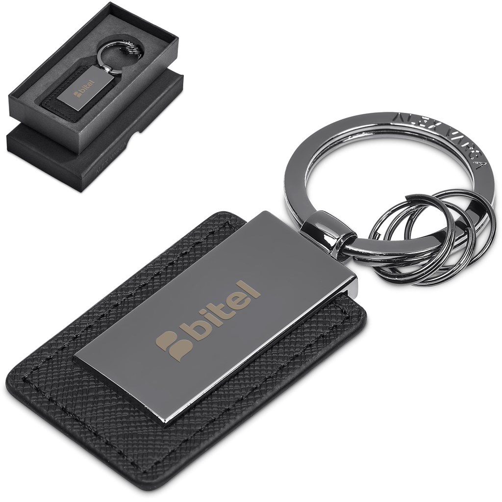 The Alex Varga collection presents a selection of understatedly elegant keyholders featuring gun metal finish zinc alloy parts, combined with a textured PU.