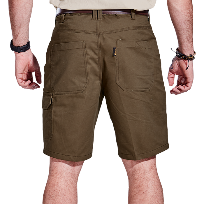 Front fly with metal zip and shank, Due to the nature of this product, there will be colour shade variances which cannot be controlled, Back patch pockets, Curved pockets with a money pocket, 240g Poly Cotton fabric, LOCAL, Hidden cell phone pocket on the side, Constructed waistband with belt-loops, Back yoke, Proudly South African, Tripple needle sticthing on back rise and inner leg, A single patch pocket with flap